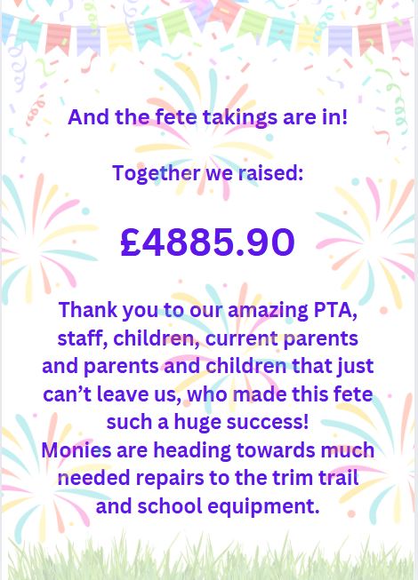 The money raised is used to provide extras for the children such as equipment and resources which would not otherwise be available within the school budget, to enhance our children’s education and enjoyment of school.