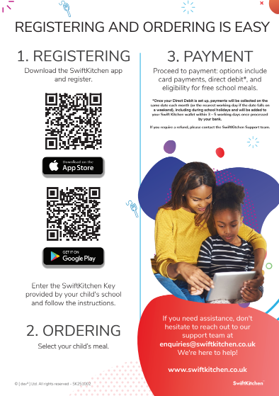 We are using a system called Swift Kitchen which is an app allowing you to order your child's meals from home.